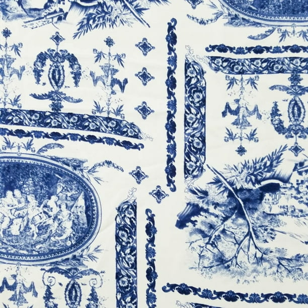 Free Shipping Off White Blue With A Toile Design Printed On Wool Fabric Diy Projects By The Yard Walmart Com