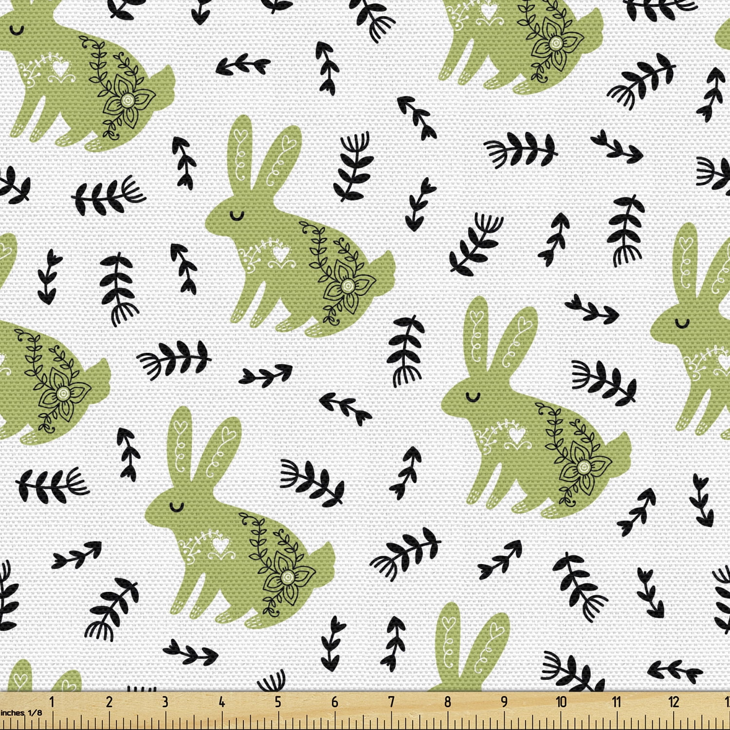Rabbit Sofa Upholstery Fabric By The Yard Ornate Bunnies With Floral Motifs And Leafy Stems Scandinavian Pattern Decorative Fabric For Diy Home Accents 5 Yards Pistachio Green Black By Ambesonne